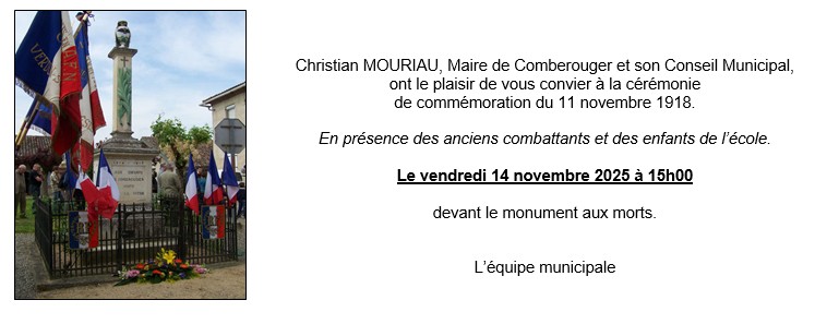 ont le plaisir de vous convier à la cérémonie de commémoration du 11 novembre 1918.