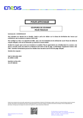 Enedis vous informe d'une coupure de courant pour travaux concernant la commune de COMBEROUGER.