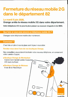 Fermeture du réseau mobile 2G dans le département 82 : 9 juin 2026