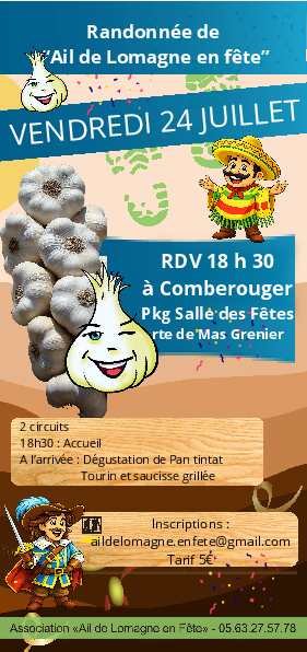 Randonnée de l'ail qui aura lieu le vendredi 24 juillet à Comberouger.